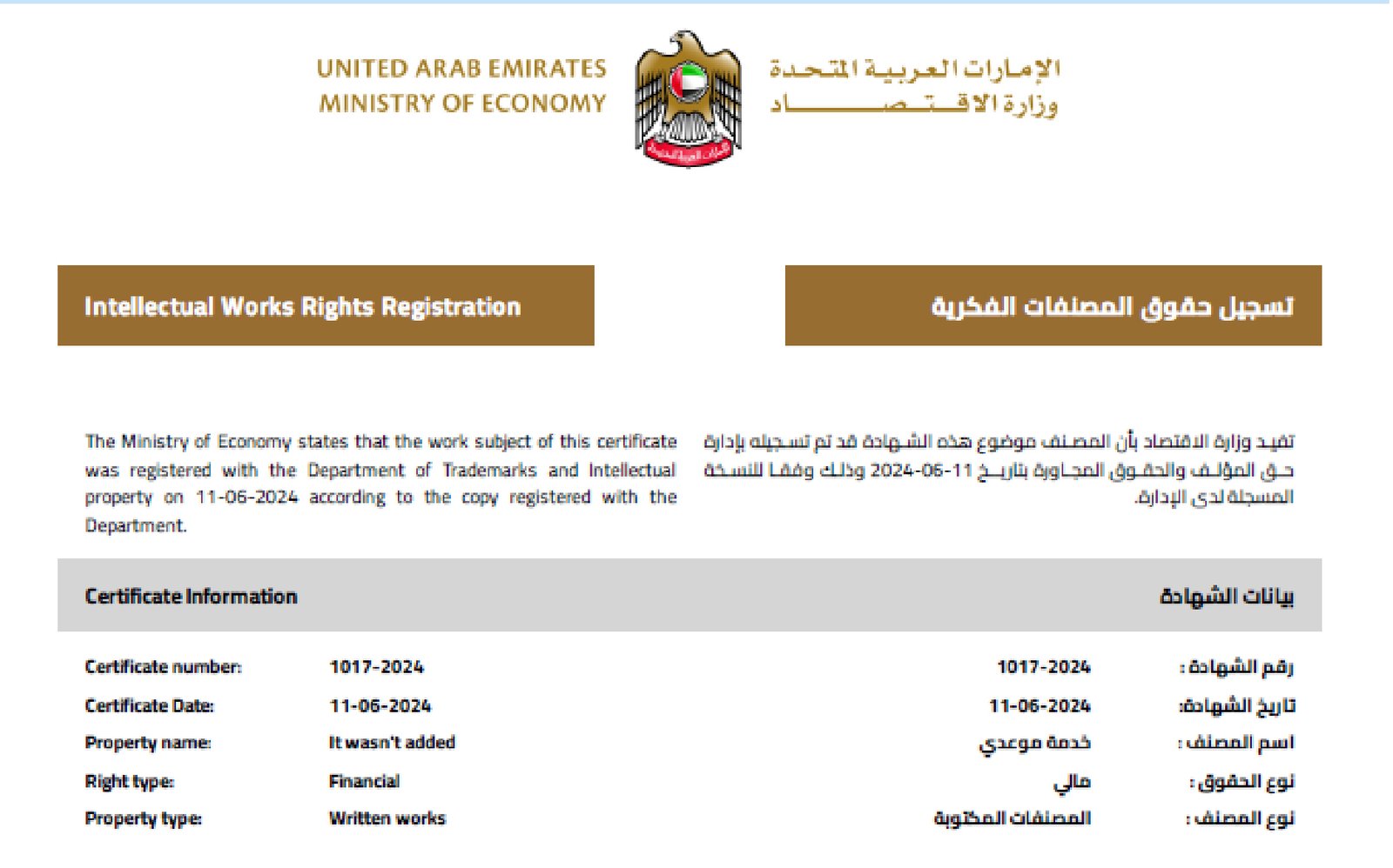 Owner of 10 innovations (intellectual property) registered with the UAE Ministry of Economy